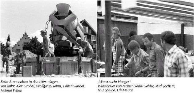 In Fortsetzung der früheren sommerlichen Feste gab es nun das Uferfest, an dem die Langenargener Vereine wesentlich mitwirkten. Vor dem früheren "Holzplatz" entstand die neue Uferanlage mit den von Franz Krayer gesponserten Wasserspielen. An Schalung, Rohrverlegung und Betonarbeiten beteiligte sich auch eine TV02-Mannschaft. Die Anlage wurde 1976 eingeweiht. 1976 wiesen einige Glanzpunkte als Lohn mühevoller Kleinarbeit den Weg ins Jubiläumsjahr. Der 11jährige Michael Boikat siegte bei den Württembergischen Schüler B-Bestenkämpfen im Weitsprung und im 75 m-Lauf. Ebenfalls errang Franz Sauter beim Württembergischen Kunstturntag in der Einzelwertung jeweils 1. Plätze am Boden und am Reck. Die Volleyballer stiegen als VSG-Meister in die Regionalliga Süd auf.